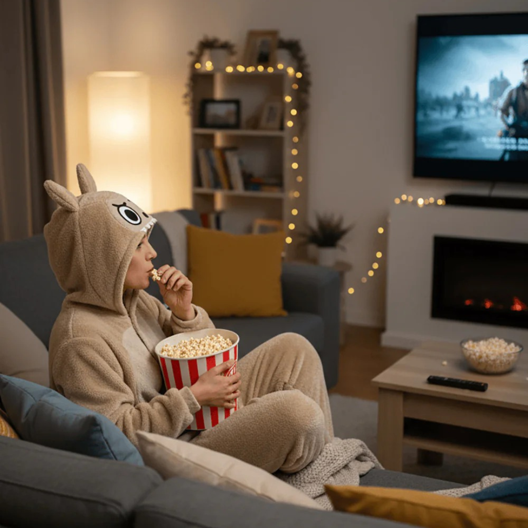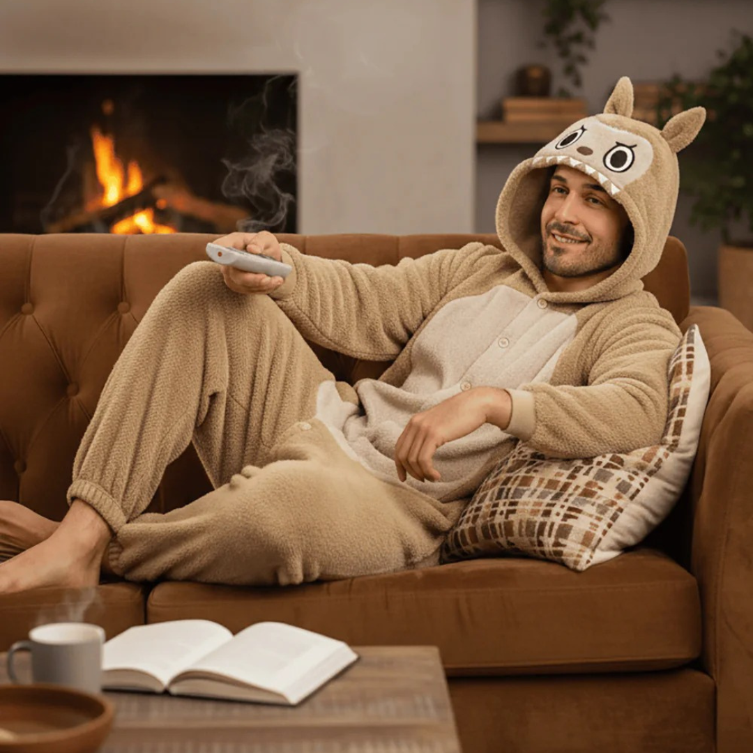 • Praktisk & Rummelig: Heldragten har en løs pasform (unisex), der giver fuld bevægelsesfrihed – uanset om du danser på et dansegulv eller rækker ud efter fjernbetjeningen.